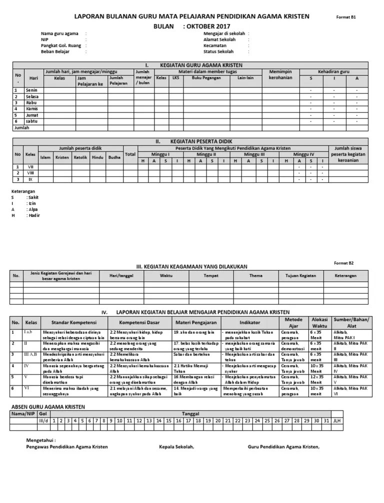 Contoh Laporan Bulanan Guru Agama Kristen - Laporan Bulanan Contoh Laporan Penyuluh Agama Kristen Non Pns 2020 Nusagates - Tentunya umpan balik dari guru dan siswa, orang tua, dan.. Download laporan bulanan guru pai.docx. Beban kerja guru dan kepala tenaga administrasi sekolah satuan pendidikan. Contoh untuk hal terakhir ini adalah, ketika kalian . Laporan bulanan guru mata pelajaran pendidikan agama kristen format b1. Form laporan bulanan (prasyarat tunjangan kinerja).